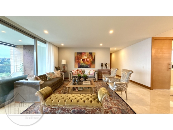 Este apartamento con 217 mts , con un diseño contemporáneo, amplios espacios con iluminación natural, cocina semi abierta con electrodomésticos de alta gama, zona de ropas y cuarto de servicio completo; comedor independiente, dos cómodas salas, balcon amplio, tres habitaciones generosas cada una completa con su baño y vestier, closet de linos, un baño social, además cuenta con 4 parqueaderos paralelos y 1 cuarto útil.