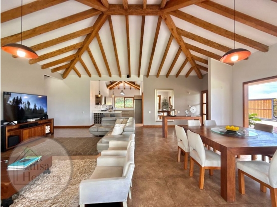 Hermosa casa campestre con una arquitectura elegante y acogedora, diseñada para disfrutar de la tranquilidad y el confort. Ubicada en una exclusiva parcelación, cuenta con un amplio lote totalmente aprovechable, lindos jardines, ideal para conectar con la naturaleza. Su zona húmeda conformada por un gran deck en madera, turco y jacuzzi ofrece un espacio perfecto para el descanso y la relajación. Un hogar único donde el lujo y la comodidad se fusionan con el entorno natural.
